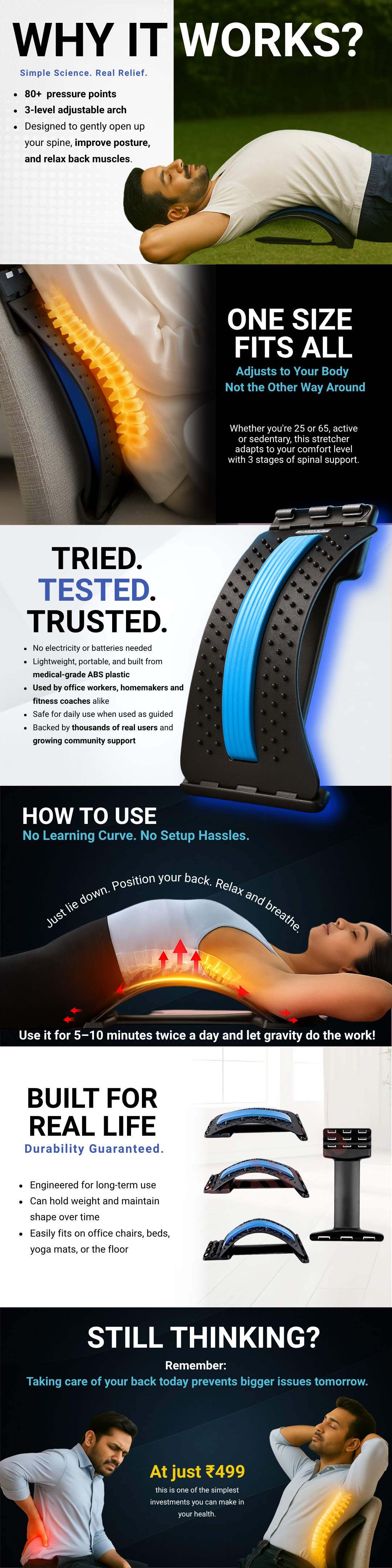 It’s suitable for office workers, drivers, fitness enthusiasts, the elderly (with caution), and anyone with mild to moderate back discomfort.